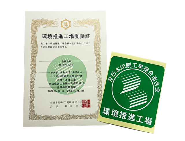 本日は皆様にご報告があります。 この度、弊社は全日本印刷工業組合連合会より「環境推進工場」の登録更新認定をいただきました!